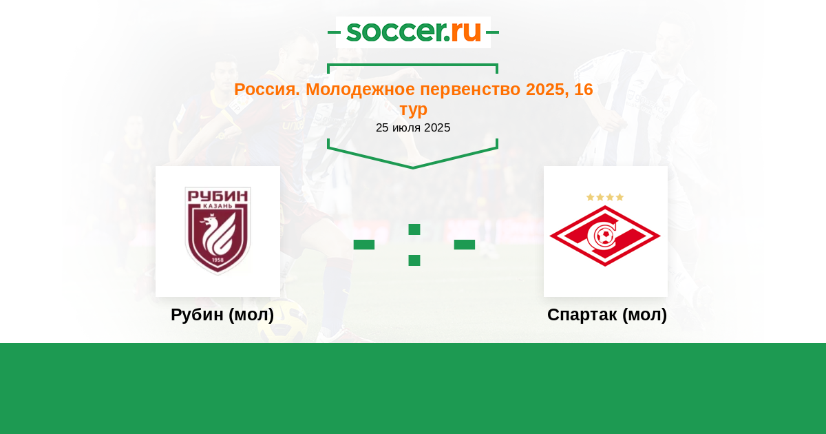 Россия. Премьер-Лига U21 16.07.2010 Спартак (мол) Логотип футбольный клуб Спартак (мол) (Москва) 2:1 Логотип футбольный клуб Рубин (мол) (Казань) Рубин (мол)