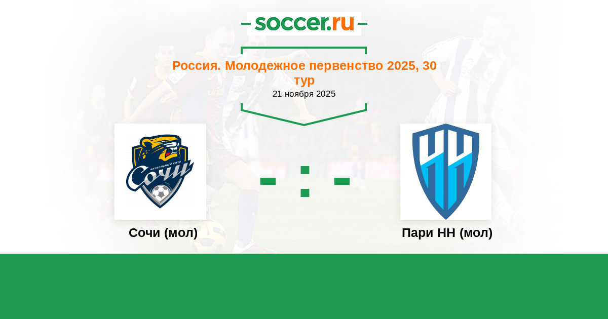 Протокол матча Сочи (мол) против Пари НН (мол)