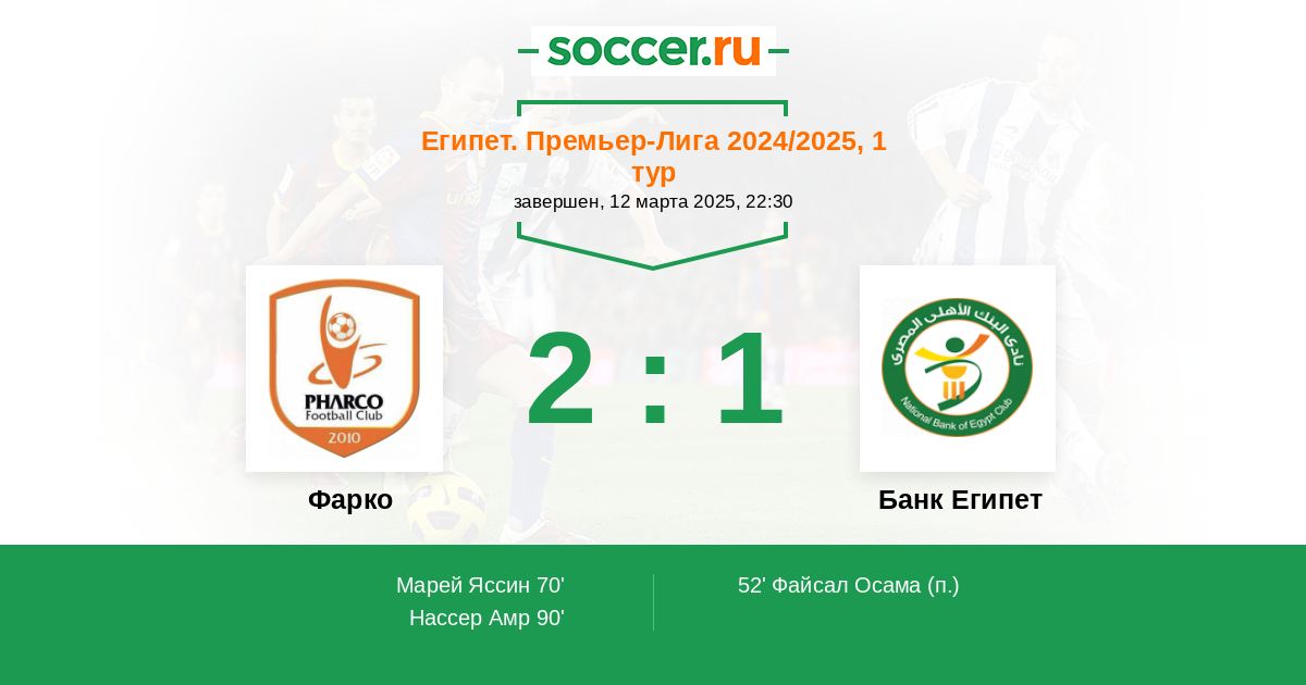 Протокол матча Фарко против Банк Египет