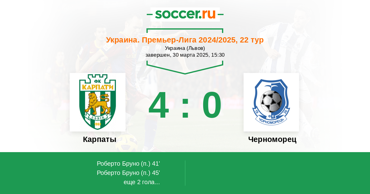Протокол матча Карпаты против Черноморец