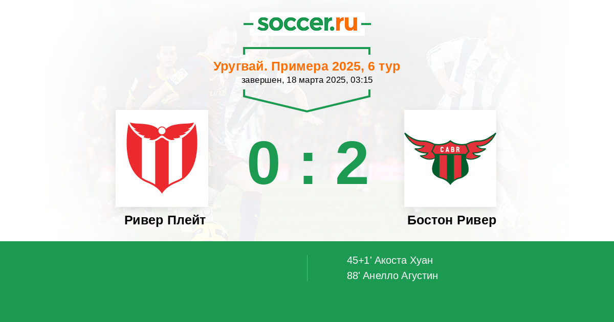 45+1' (0:1) Акоста Хуан (31) (Гонсалес Александер (28))