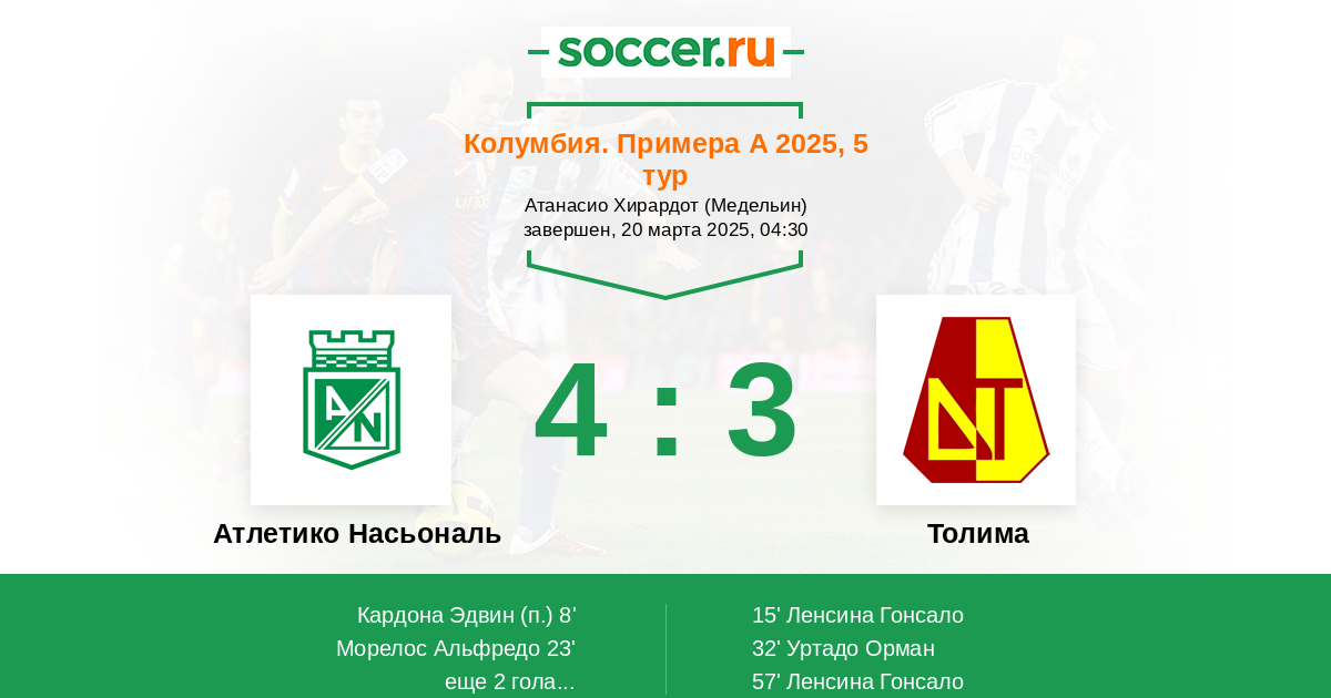 Протокол матча Атлетико Насьональ против Толима