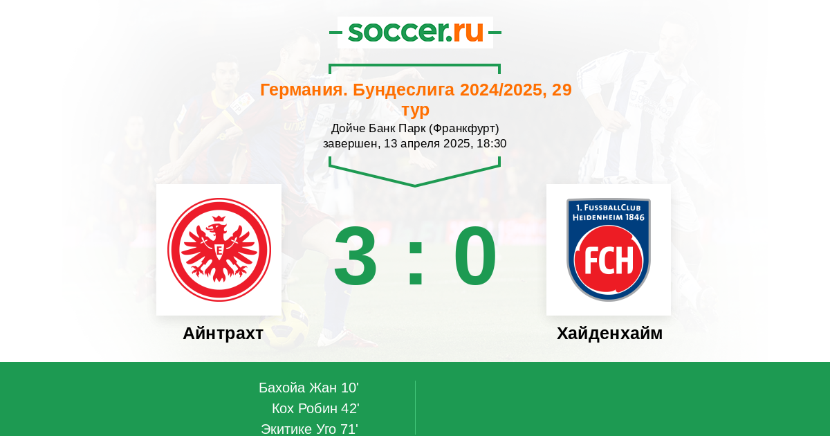 Протокол матча Айнтрахт против Хайденхайм