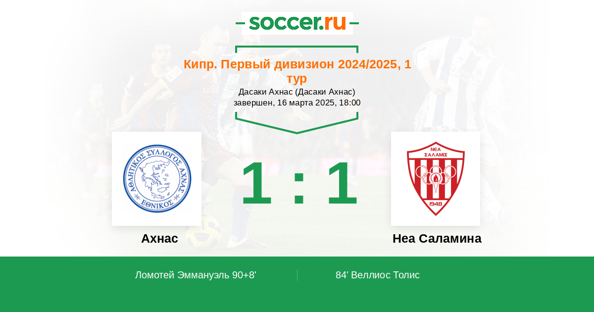 Протокол матча Ахнас против Неа Саламина