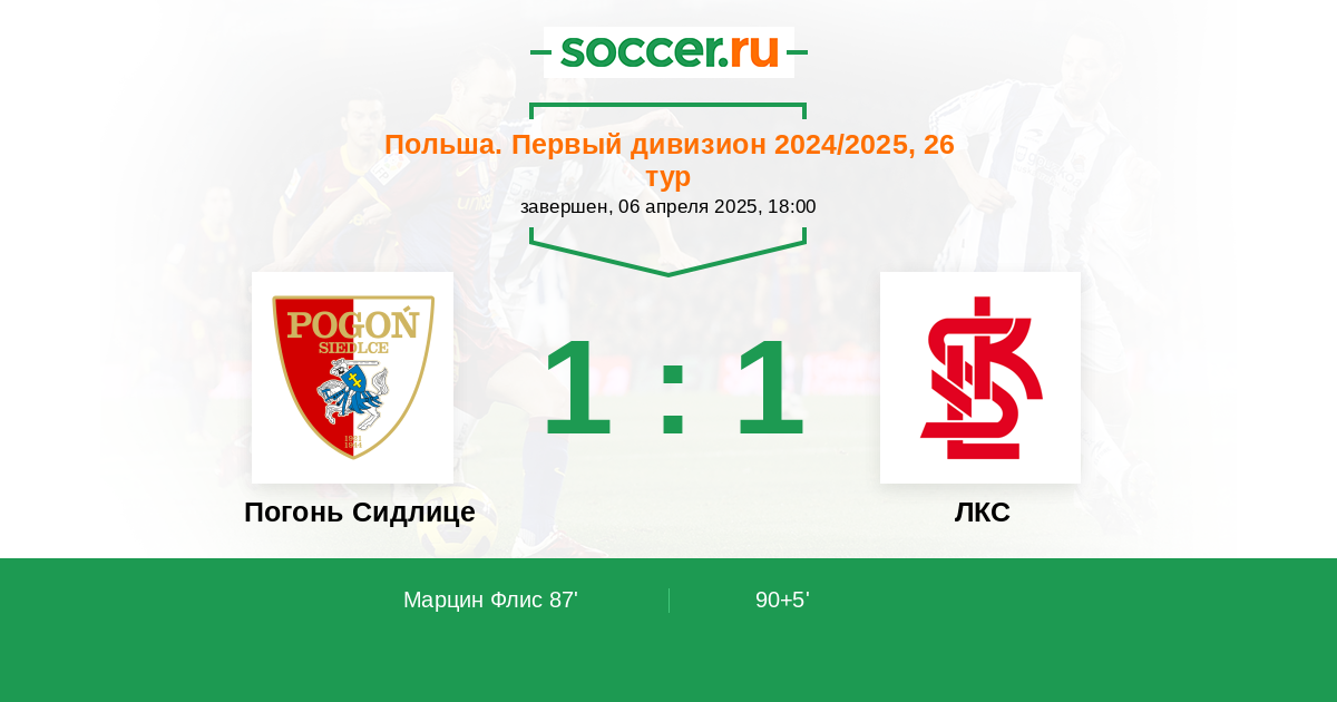Протокол матча Погонь Сидлице против ЛКС