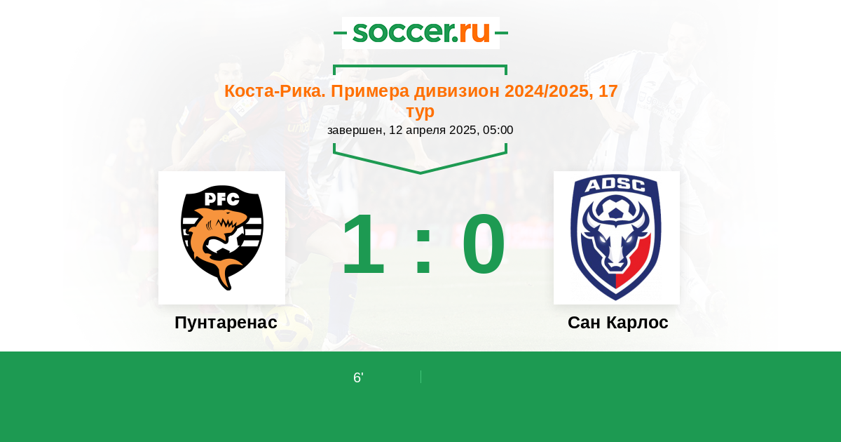 Протокол матча Пунтаренас против Сан Карлос