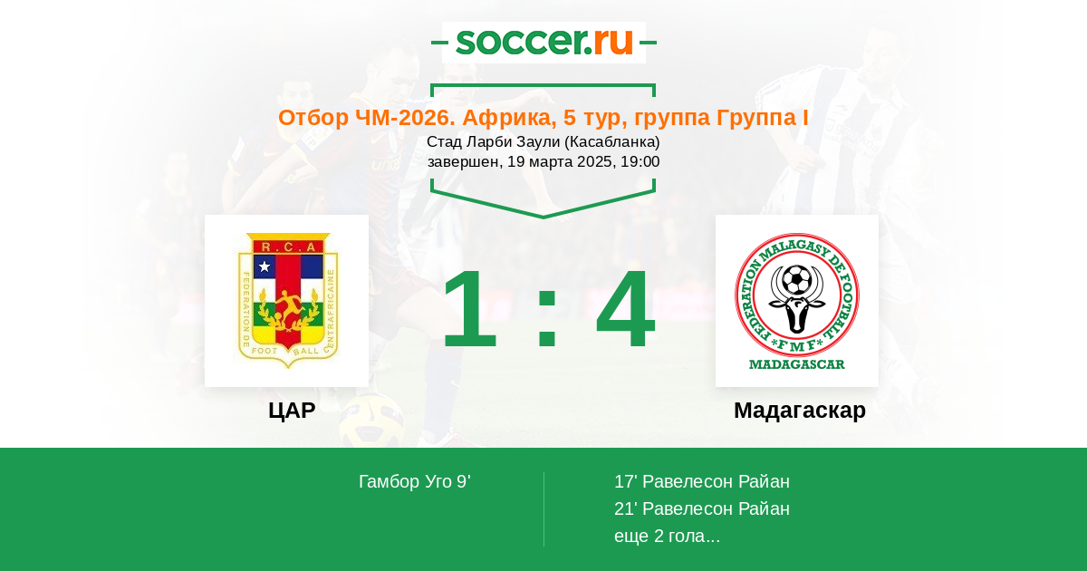 Протокол матча ЦАР против Мадагаскар