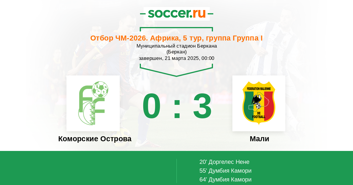 Протокол матча Коморские Острова против Мали