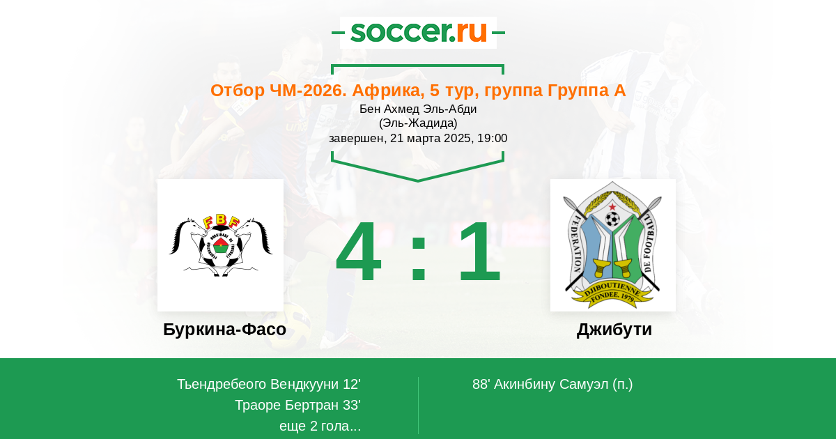 47' (3:0) Зунграна Мохамед (6) (Тьендребеого Вендкууни (20))