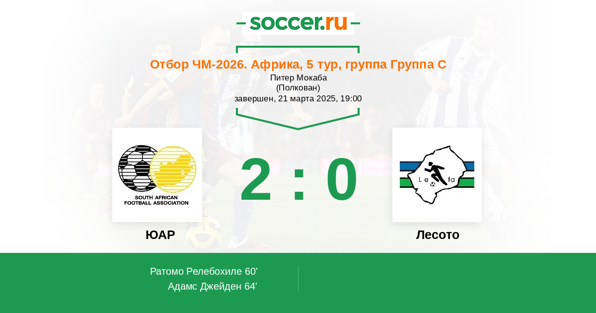 Расстановка матча ЮАР против Лесото