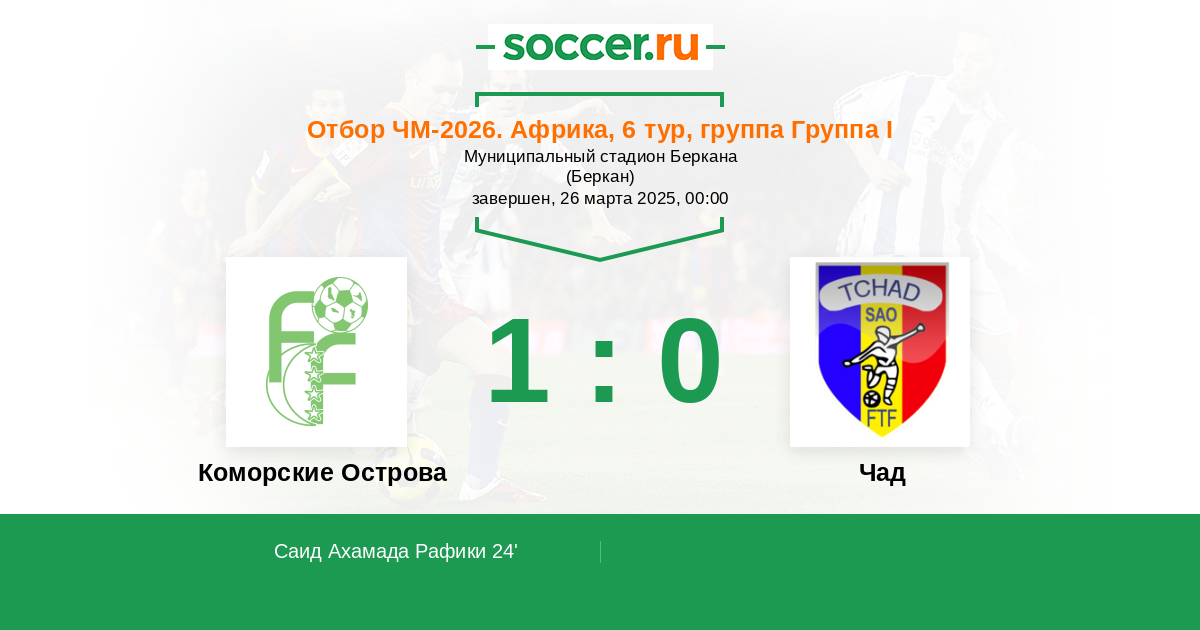 Протокол матча Коморские Острова против Чад