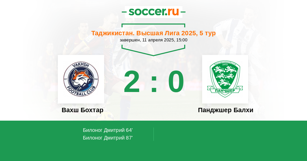 Протокол матча Вахш Бохтар против Панджшер Балхи
