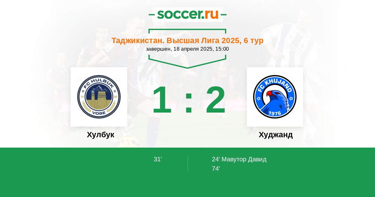 Протокол матча Хулбук против Худжанд