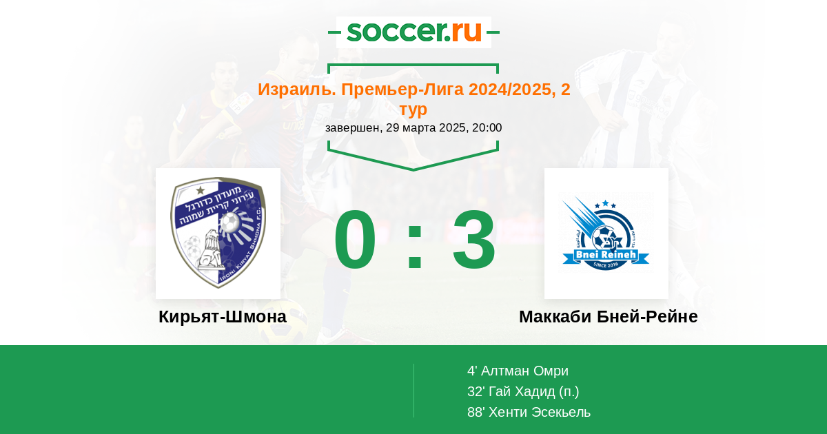 Протокол матча Кирьят-Шмона против Маккаби Бней-Рейне