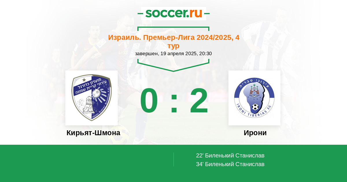 Протокол матча Кирьят-Шмона против Ирони