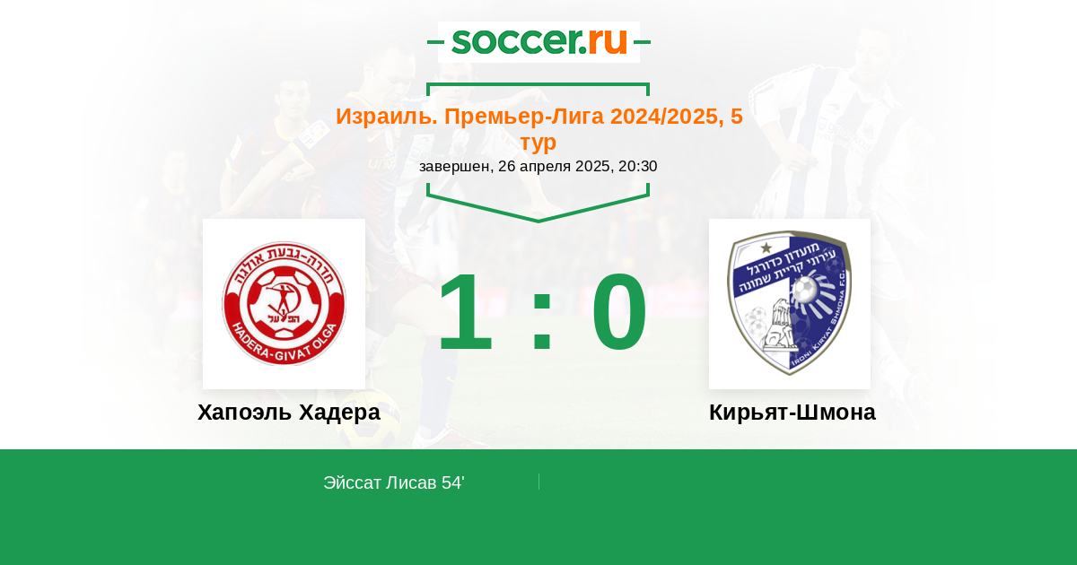 Протокол матча Хапоэль Хадера против Кирьят-Шмона