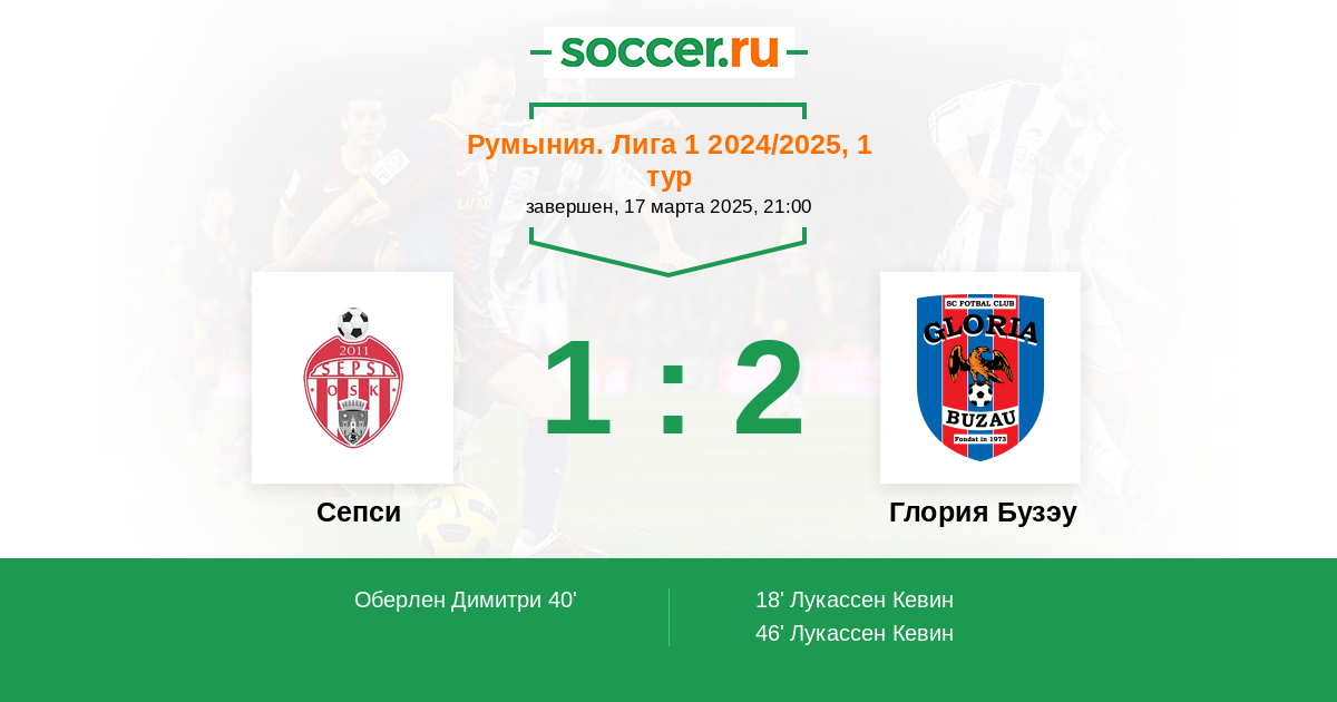 Протокол матча Сепси против Глория Бузау