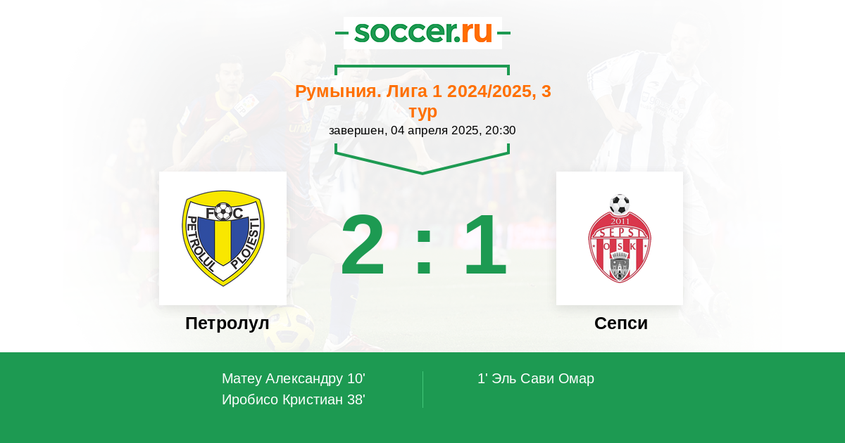 Протокол матча Петролул против Сепси