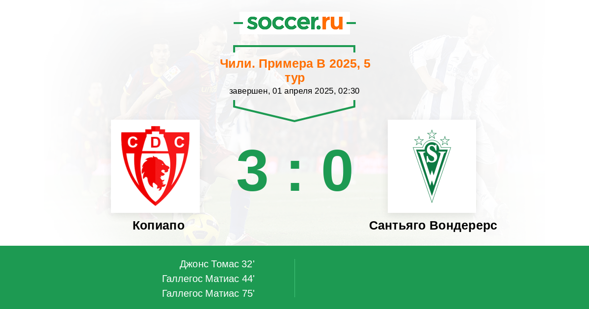 Протокол матча Копиапо против Сантьяго Вондерерс