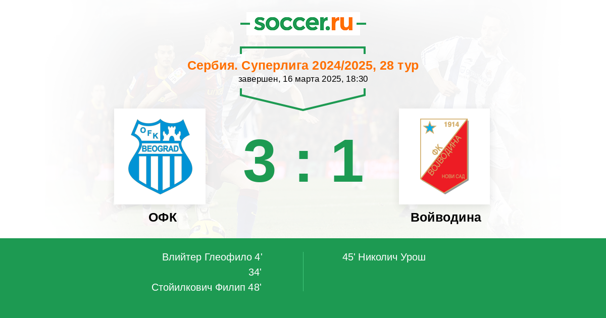 Протокол матча ОФК против Войводина