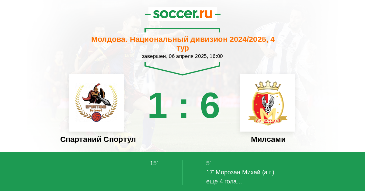 Протокол матча Спартаний Спортул против Милсами