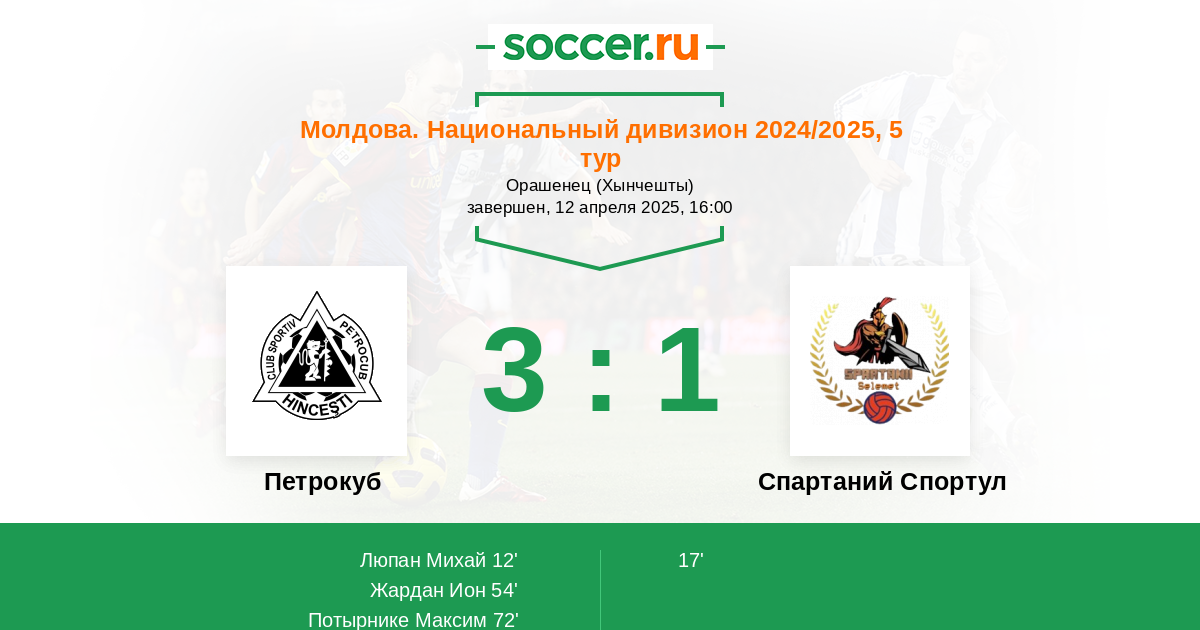 Протокол матча Петрокуб против Спартаний Спортул