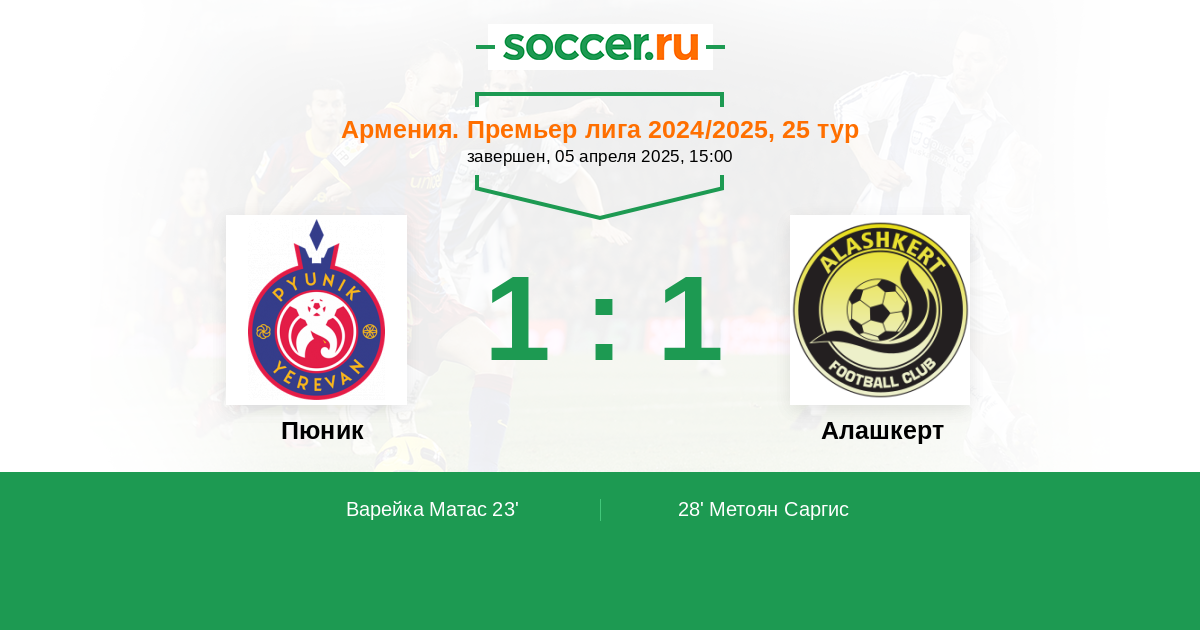 28' (1:1) Метоян Саргис (Аветисян Петрос)