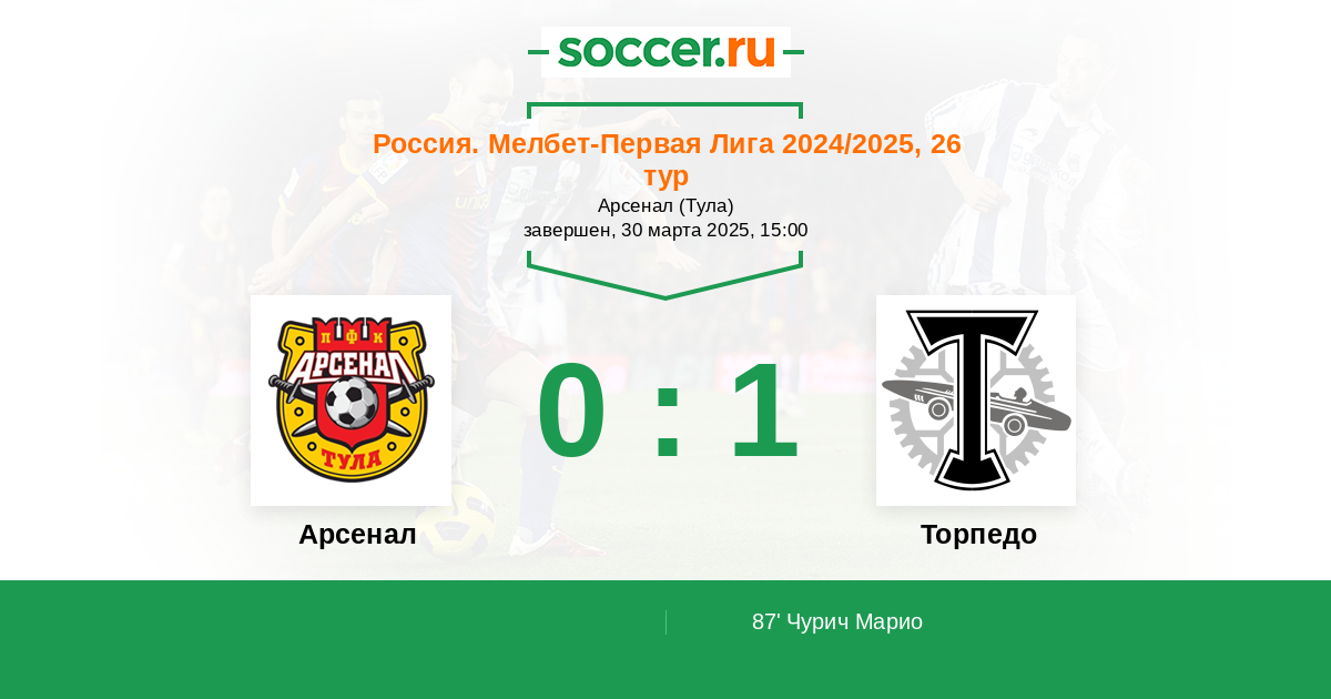 Протокол матча Арсенал против Торпедо
