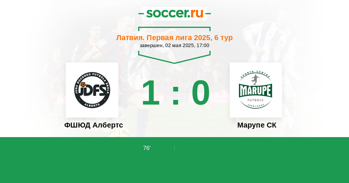 Протокол матча ФШЮД Албертс против Марупе СК