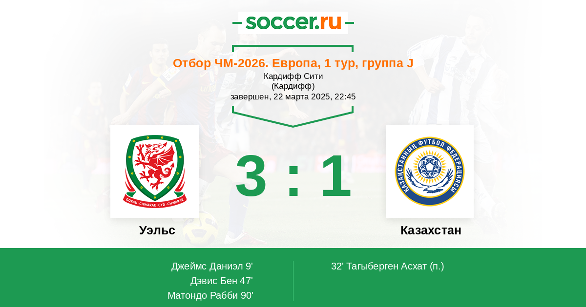 В предстоящем матче 1 - го тура отбора на ЧМ 2026 в зоне Европа между командами сборной Уэльса и сборной Казахстана , более чем явным фаворитом на победу является команда хозяев сборная Уэльса.