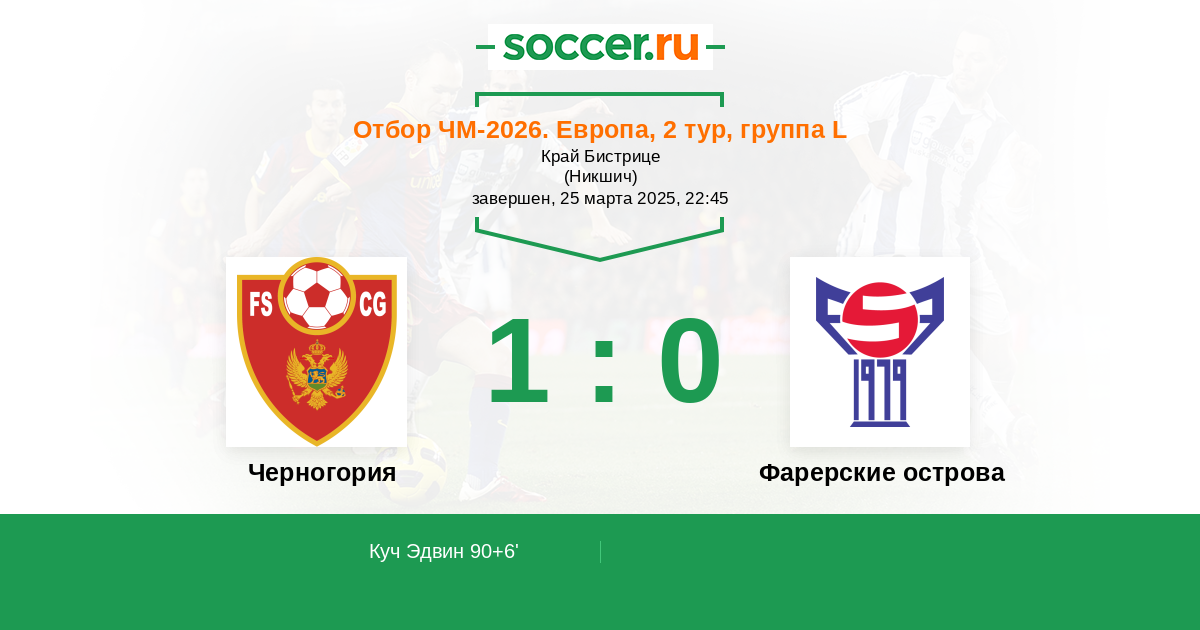 Протокол матча Черногория против Фарерские острова