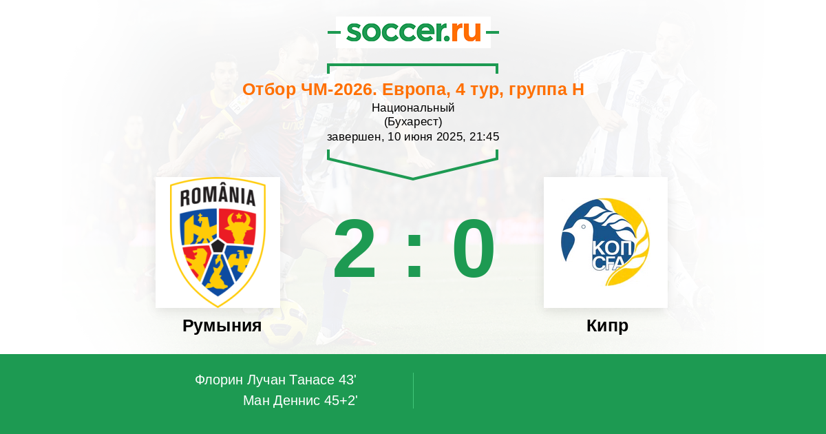 43' (1:0) Флорин Лучан Танасе (19) (Ман Деннис (10))