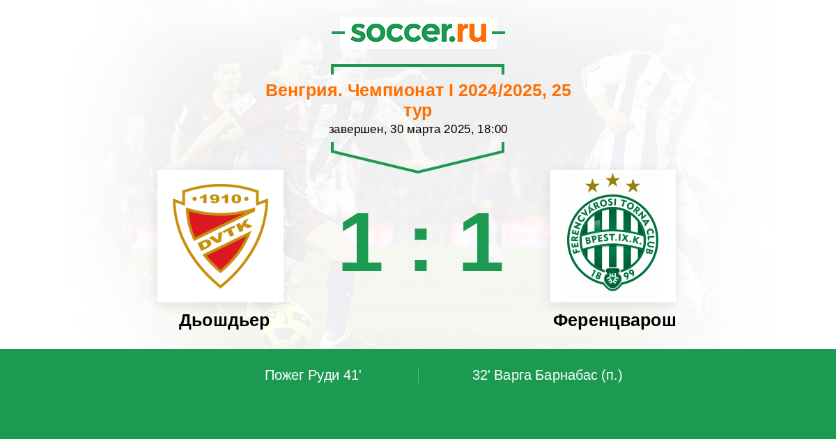 Протокол матча Дьошдьер против Ференцварош