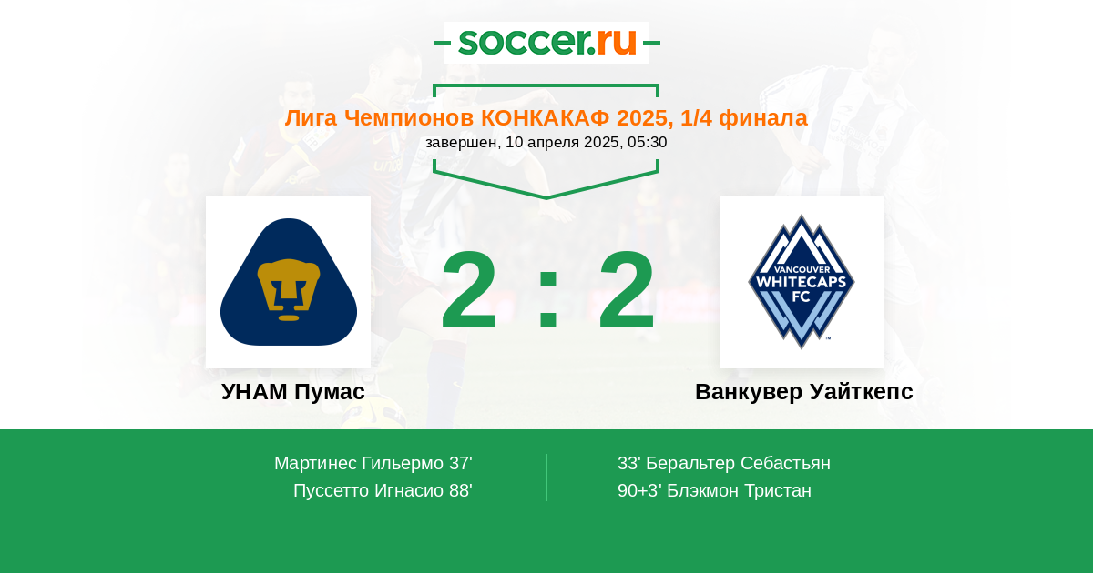 Протокол матча УНАМ Пумас против Ванкувер Уайткепс