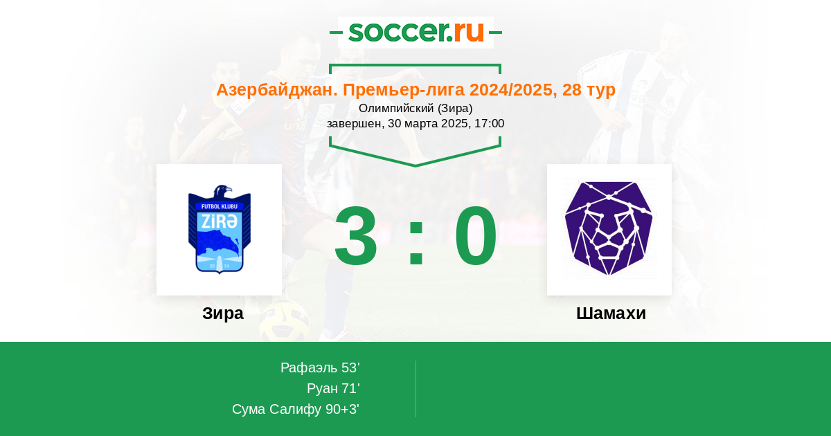 Протокол матча Зира против Шамахи
