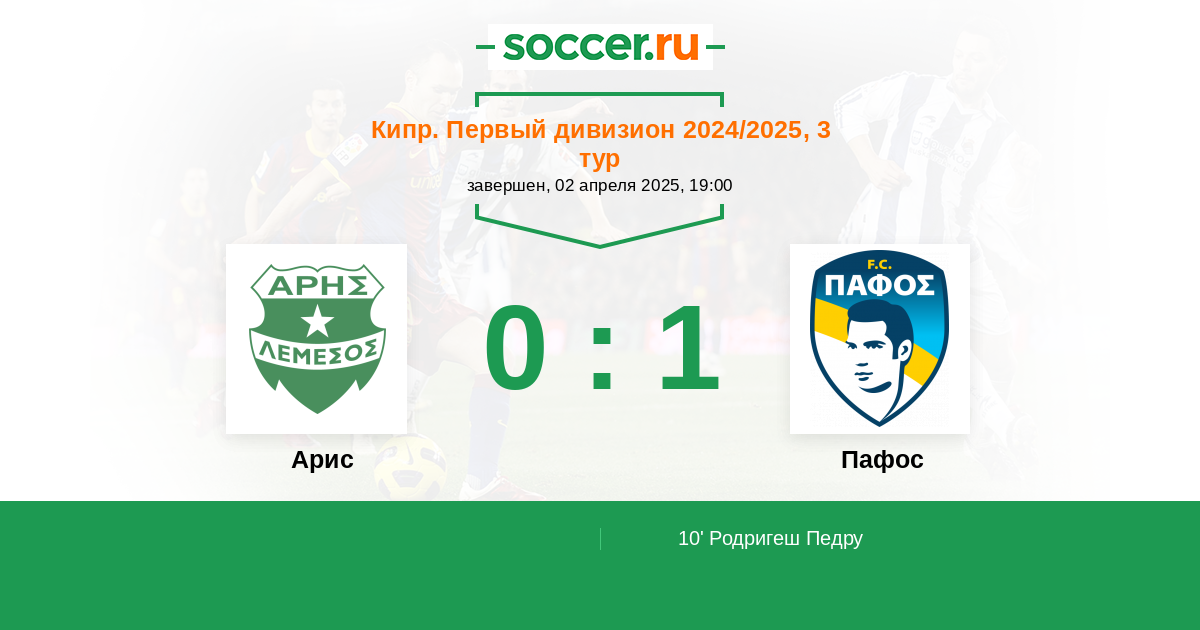 Протокол матча Арис против Пафос