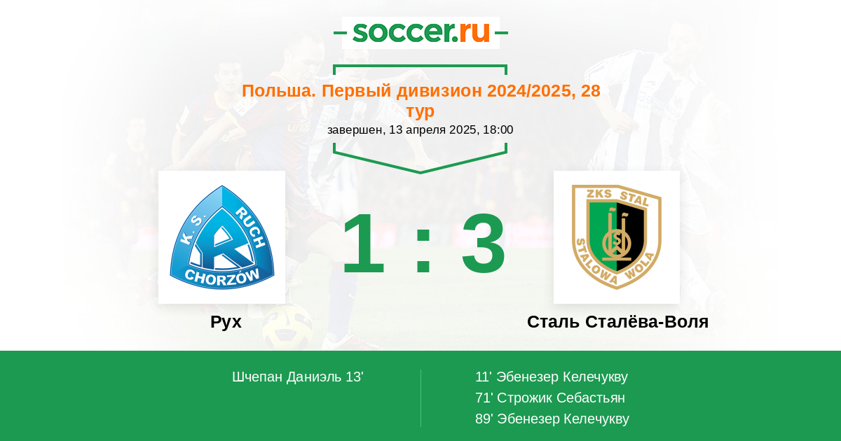 13' (1:1) Шчепан Даниэль (Швох Матеуш)