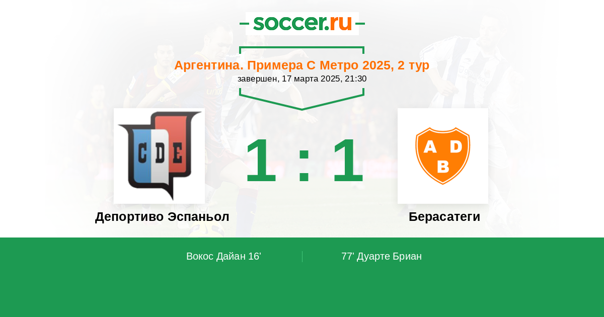 Протокол матча Депортиво Эспаньол против Берасатеги