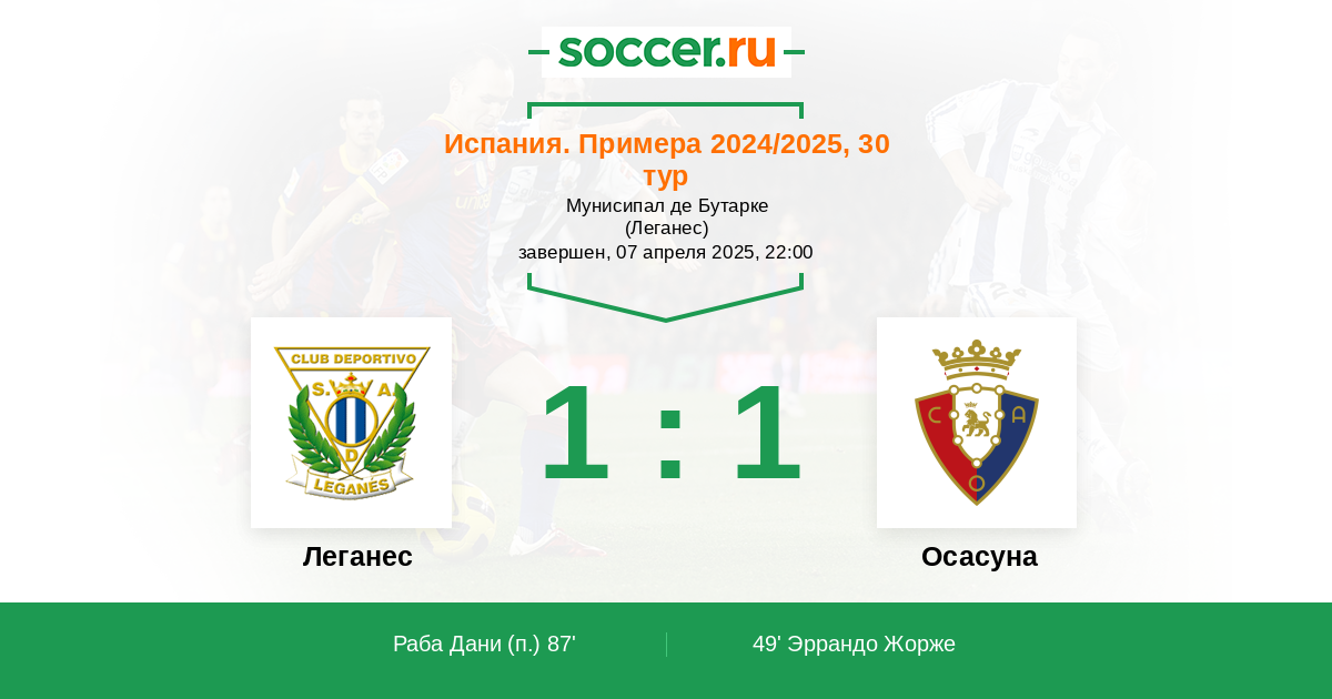 Протокол матча Леганес против Осасуна