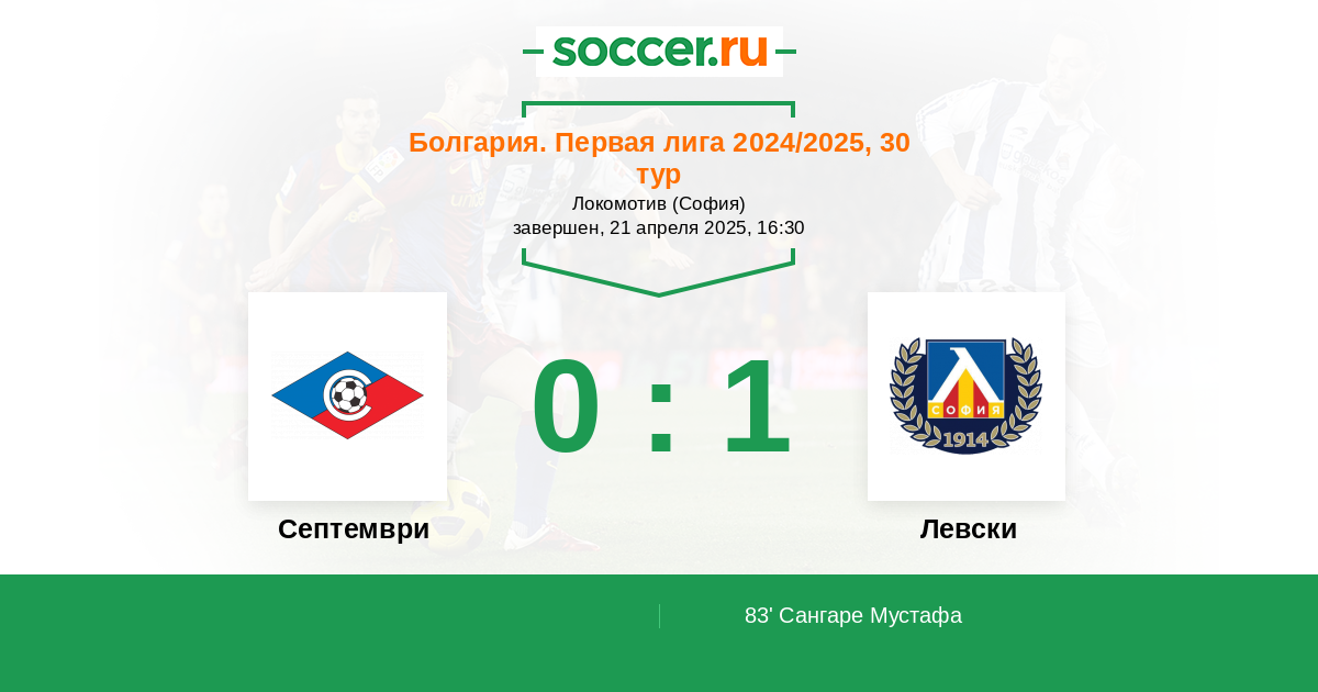 Протокол матча Септември против Левски