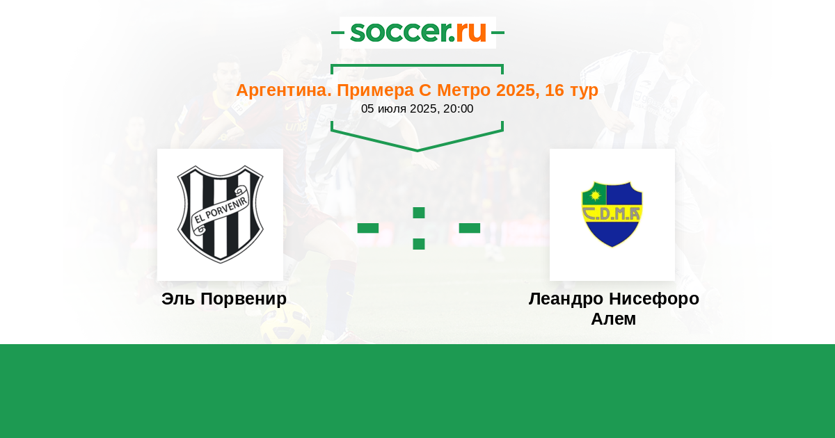 Протокол матча Эль Порвенир против Леандро Нисефоро Алем