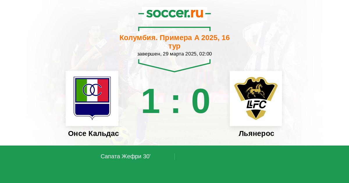 Протокол матча Онсе Кальдас против Льянерос