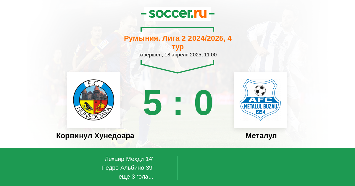Протокол матча Корвинул Хунедоара против Металул
