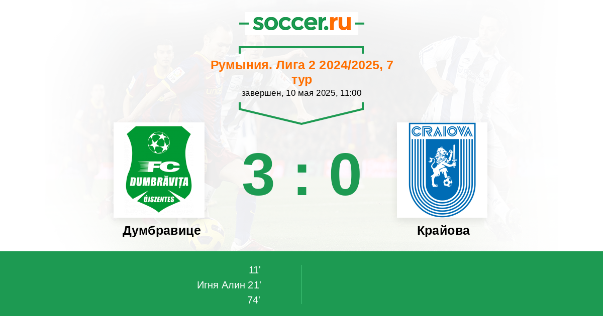 Протокол матча Думбравице против Крайова