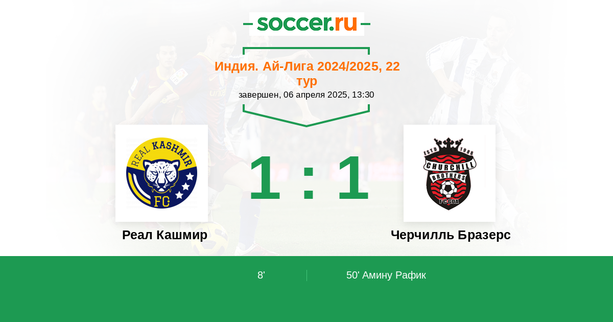 Протокол матча Реал Кашмир против Черчилль Бразерс