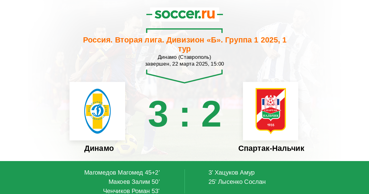 Протокол матча Динамо Ставрополь против Спартак-Нальчик