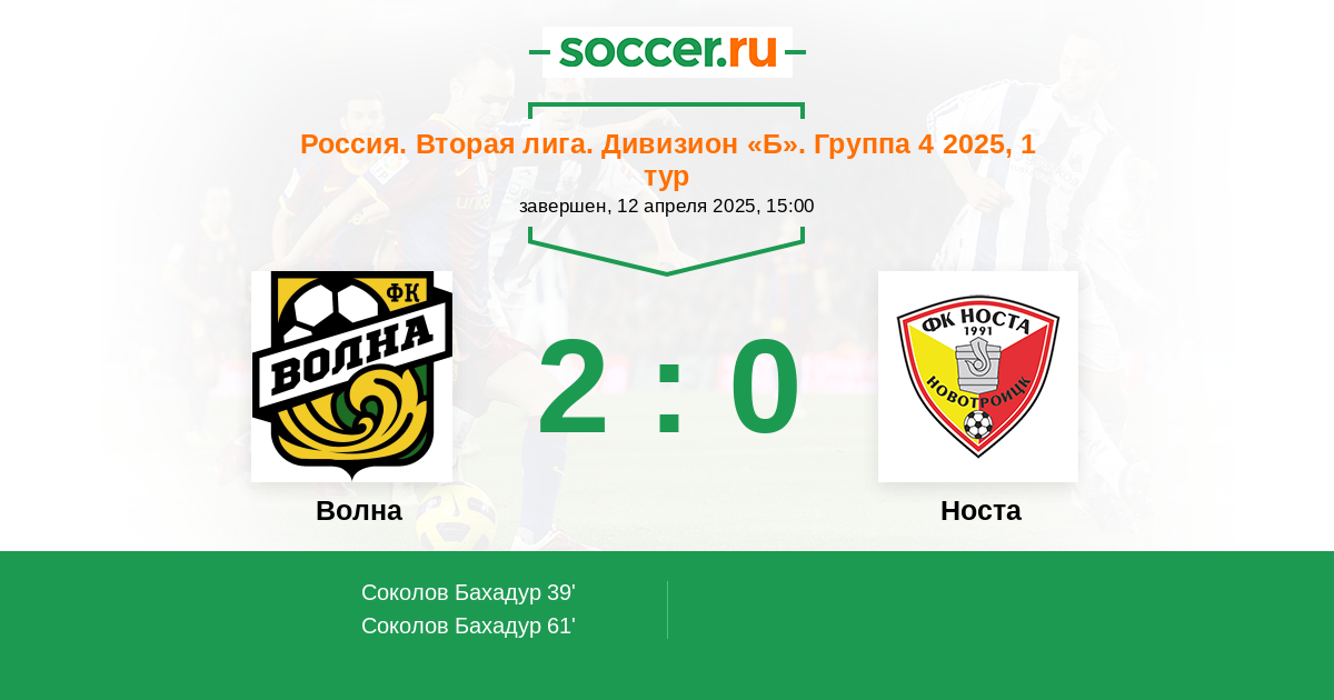 Протокол матча Волна против Носта