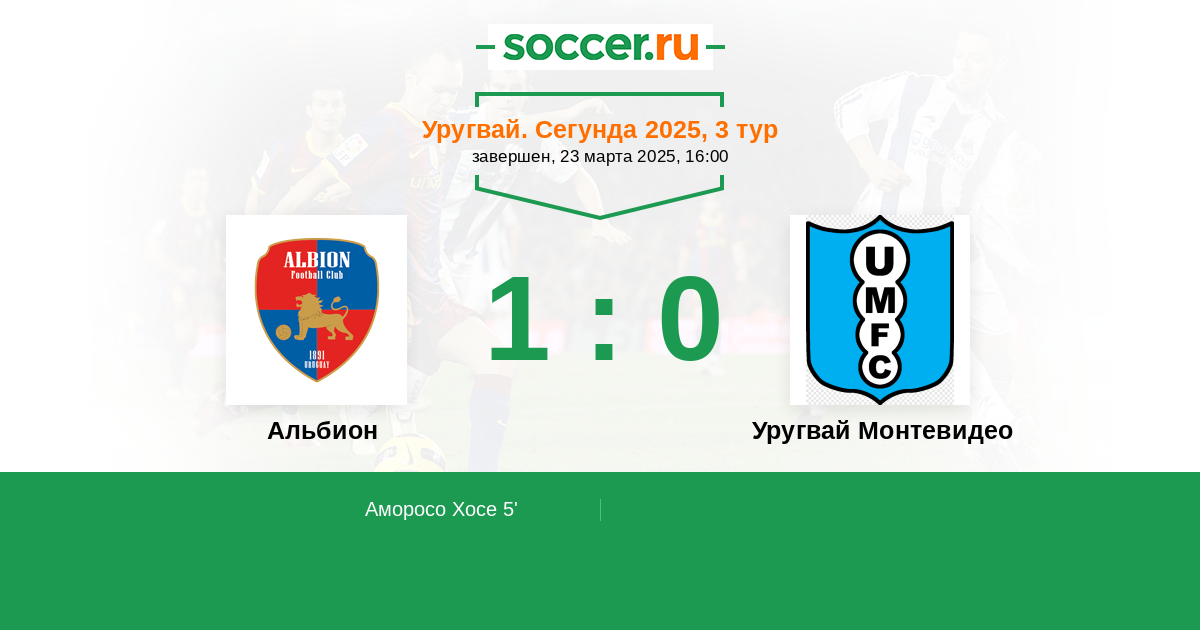 Протокол матча Альбион против Уругвай Монтевидео