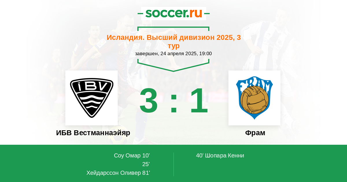 Протокол матча ИБВ Вестманнаэйяр против Фрам