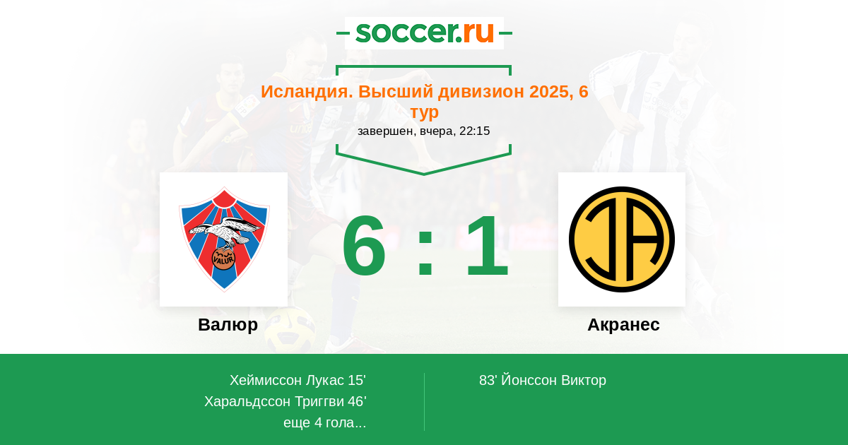 Протокол матча Валюр против Акранес